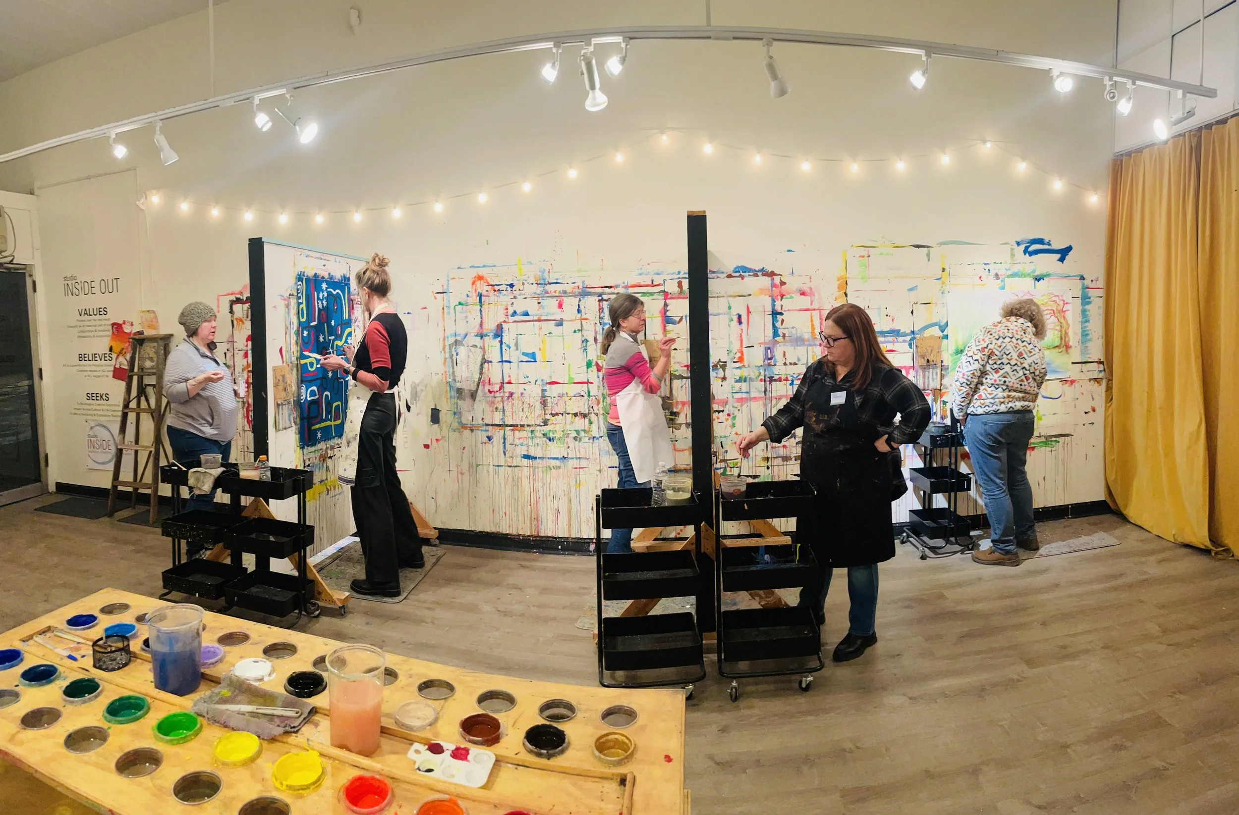 We focus on the present moment of art-making, without an emphasis for talent, skill or the final product.
